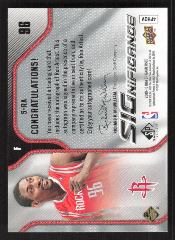 2009 SP GAME USED RON ARTEST S-RA MINT SIGNIFICANCE AUTOGRAPH LOS ANGELES LAKERS