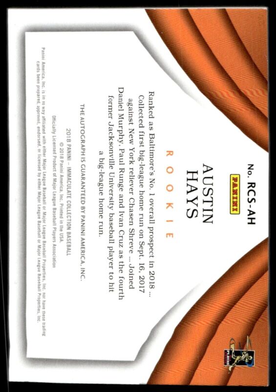 This AUSTIN HAYS, from the 2018 PANINI IMMACULATE COLLECTION set, is in MINT condition.