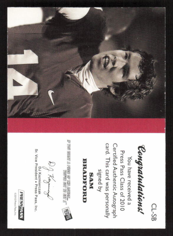 2010 PRESS PASS PE SAM BRADFORD CLSB CLASS OF 2010 AUTOGRAPH RC 66/150 OKLAHOMA