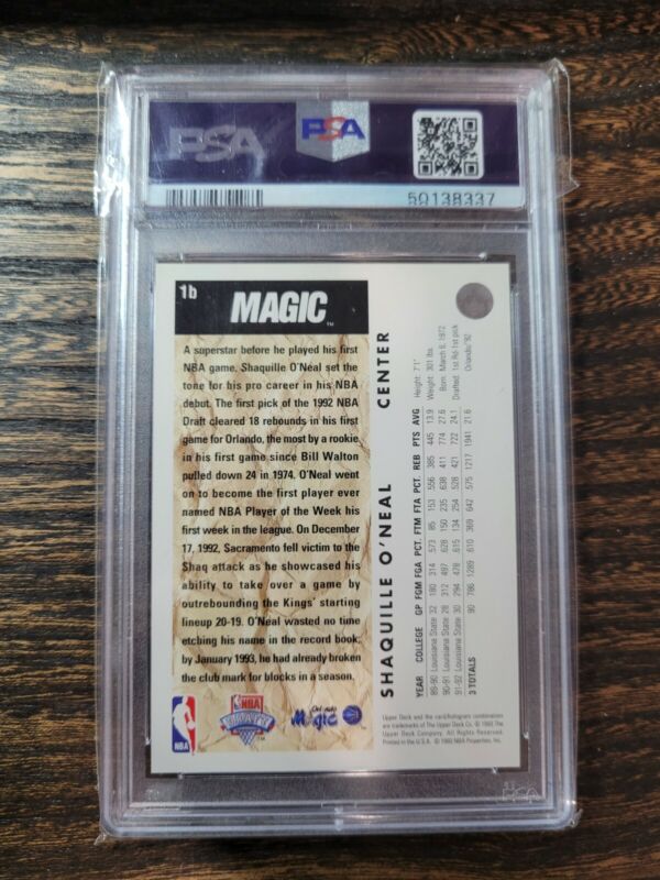 1992 UPPER DECK SHAQUILLE O'NEAL RC ROOKIE TRADE CARD PSA 8 BASKETBALL MAGIC
