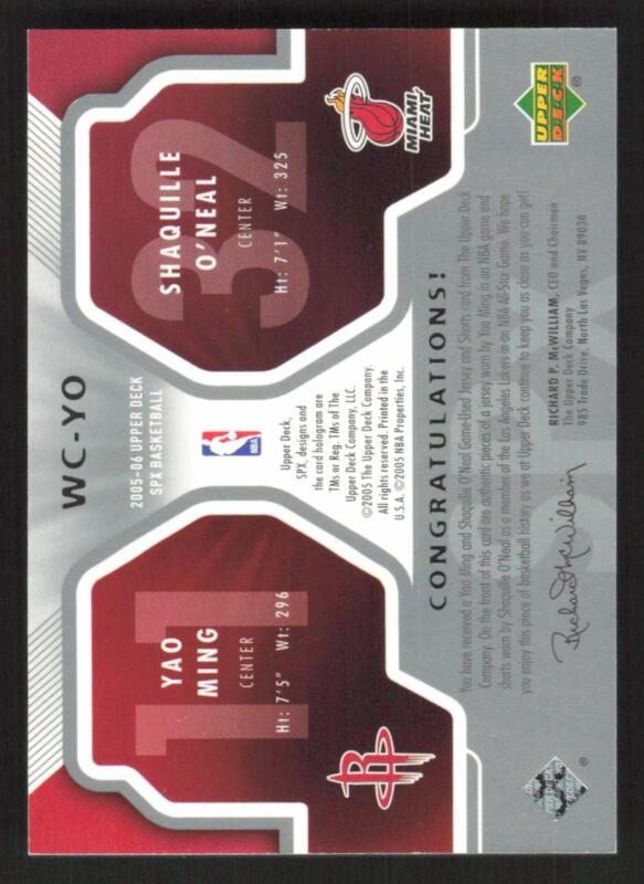 2005 SPX SHAQUILLE O'NEAL WC-YO YAO MING WINNING MATERIALS COMBOS MIAMI HEAT