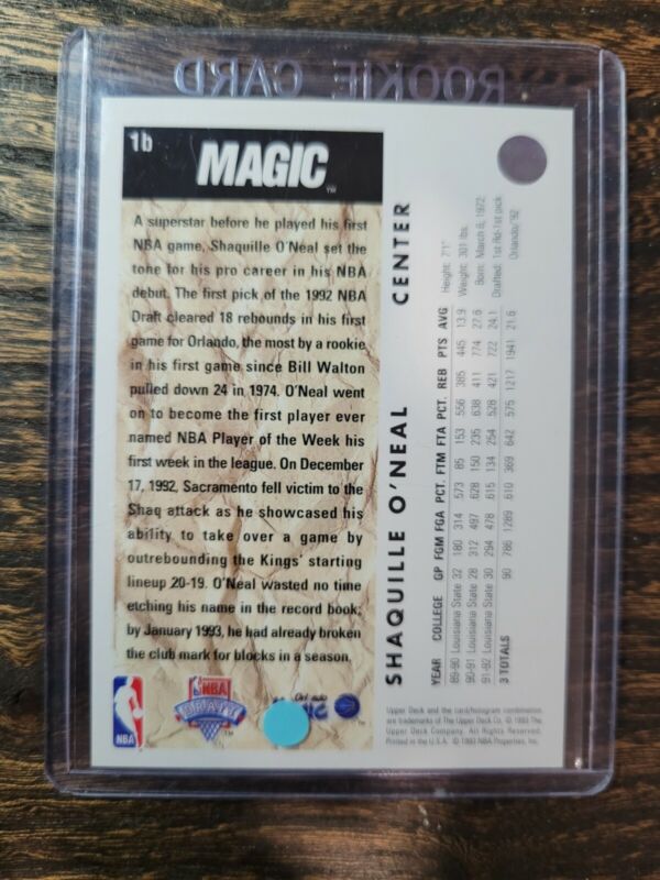 1992 UPPER DECK SHAQUILLE O'NEAL RC ROOKIE TRADE CARD BASKETBALL ORLANDO MAGIC