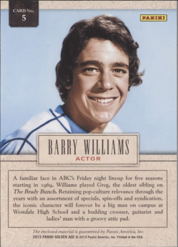 2013 PANINI GOLDEN AGE BARRY WILLIAMS 5 MINT MUSEUM AGE MEMORABILIA BRADY BUNCH