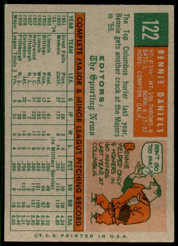 1959 TOPPS BENNIE DANIELS 122 VG-EX BASEBALL PITTSBURGH PIRATES