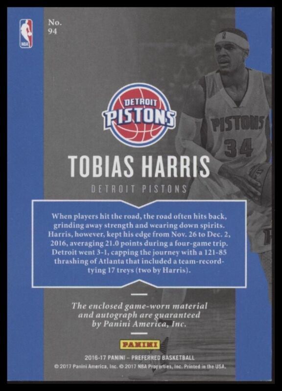 2016 PANINI PREFERRED TOBIAS HARRIS 94 SILHOUETTES AUTOGRAPH 32/75 PISTONS