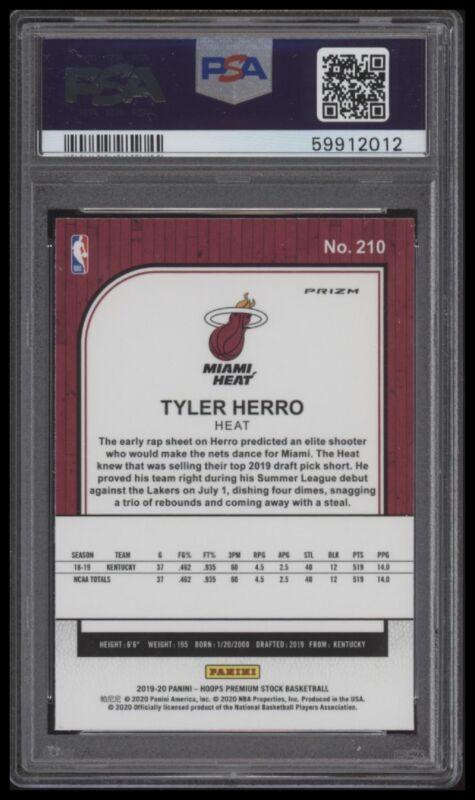 2019 HOOPS PREMIUM STOCK TYLER HERRO 210 GEM MINT PRIZMS FLASH RC PSA 10 HEAT