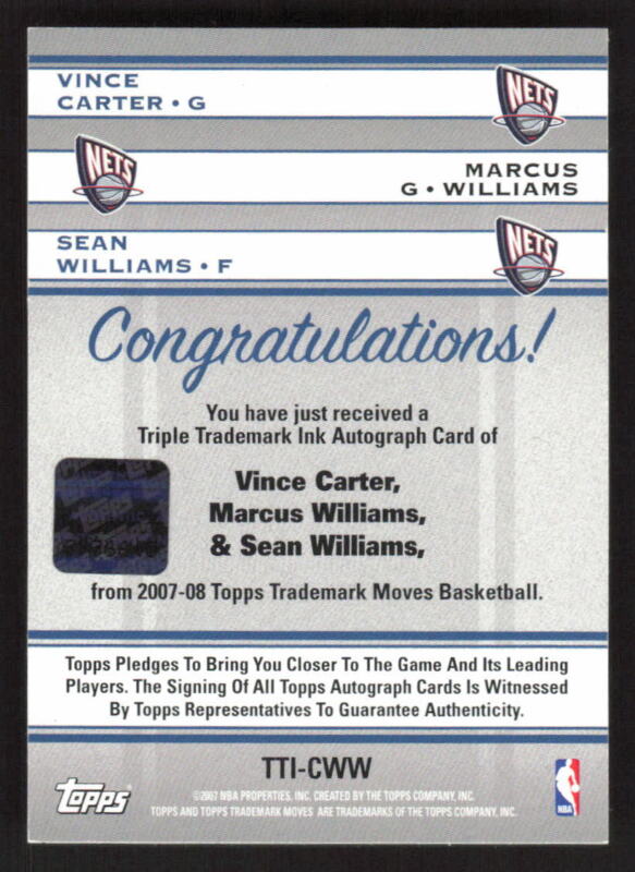 2007 TOPPS TRADEMARK MOVES VINCE CARTER TRIPLE INK AUTOGRAPH WILLIAMS 10/39 NETS