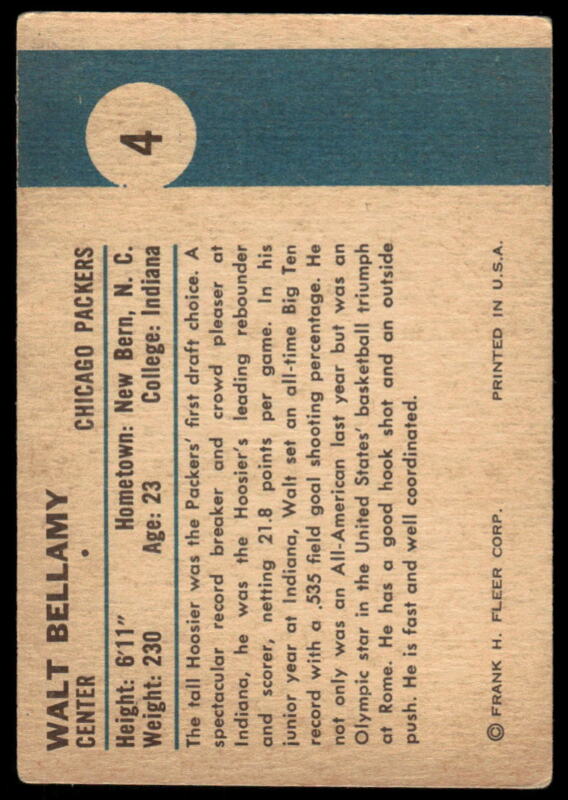 1961 FLEER WALT BELLAMY 4 VG RC BASKETBALL CHICAGO PACKERS