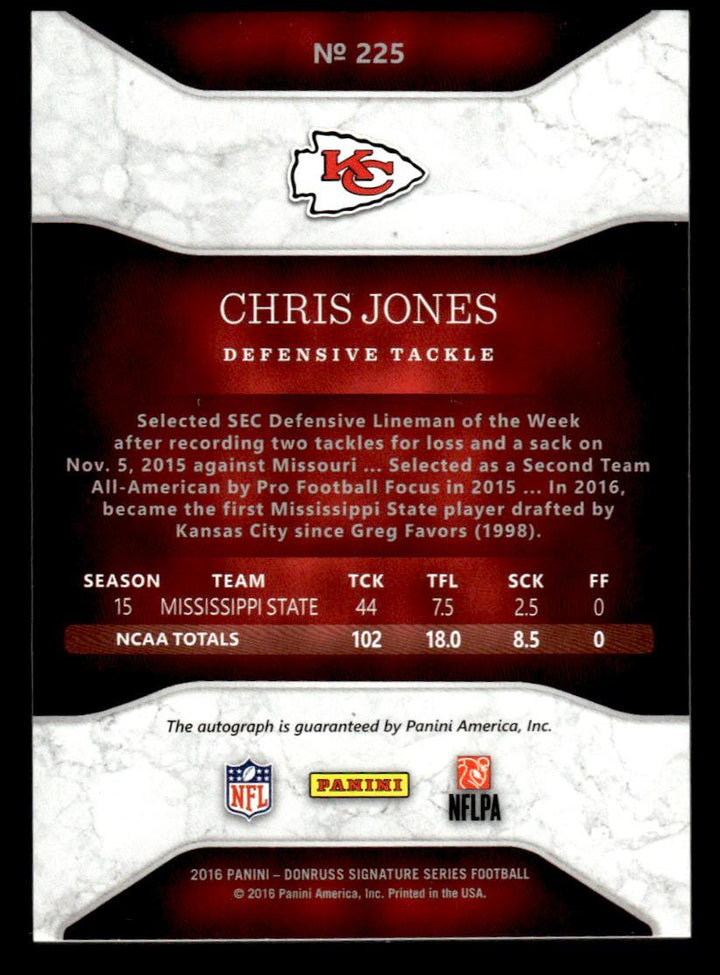 2016 DONRUSS SIGNATURE SERIES CHRIS JONES 225 RC AUTOGRAPH KANSAS CITY CHIEFS