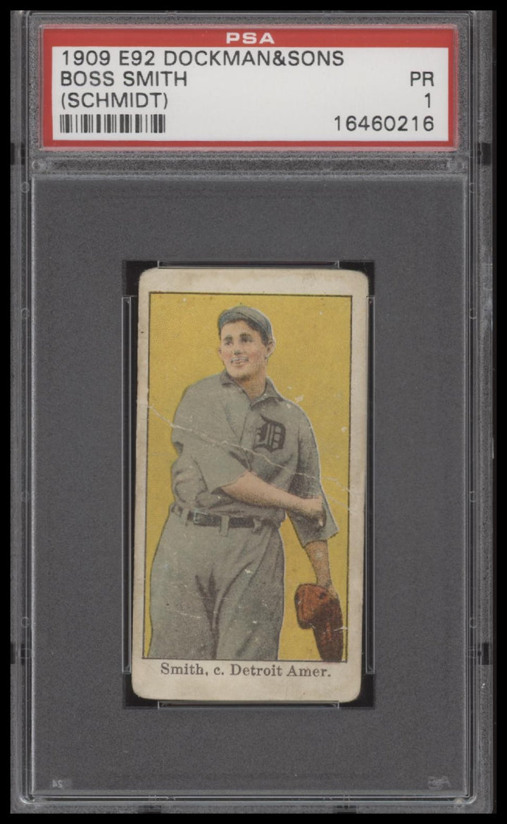 1909 E92 BOSS SCHMIDT NNO POOR DOCKMAN & SONS GUM PSA 1 BASEBALL DETROIT TIGERS