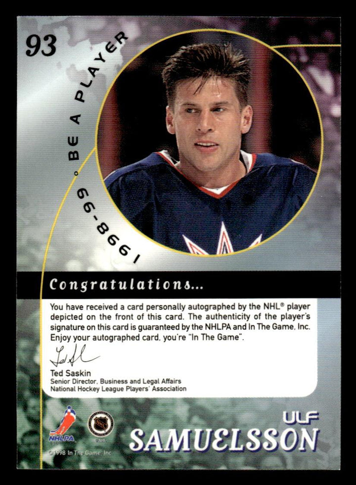 1998 BE A PLAYER ULF SAMUELSSON 93 MINT AUTOGRAPHS HOCKEY NEW YORK RANGERS